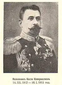 Konstantin Velikov Kavarnaliev was a Bulgarian major general, who died at the Battle of Doiran during the Second Balkan War.