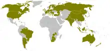 Korfball is played in 69 countries including the United States, China, England, Scotland, Ireland, Wales, Australia, New Zealand, Czech Republic, Slovakia, Poland, Ukraine, Greece, Serbia, South Africa, Zimbabwe, India, The Netherlands, Belgium, Nigeria, Morocco, Ghana, Russia, Germany, Taiwan, Turkey, Hong Kong, Portugal, Pakistan, India, Sweden, Hungary, Philippines, Indonesia, Italy, Spain, France and Romania.[5]