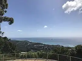 Korora Lookout has views over the Korora Basin and out to the sea. The lookout is accessed from Sealy Lookout Drive by the 400m Gumgali walking track.[16] Along this track are sculptures, murals and signage illustrating the Aboriginal story of Gumgali, the black goanna.
