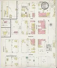 On December 22, 1895, a fire burned seven brick buildings and destroyed the merchandise of seventeen firms, causing a loss of $75,000 of which only $30,000 was insured.[13]