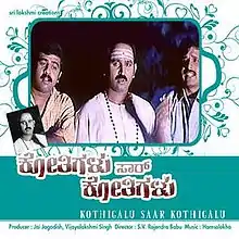 Kothigalu Saar Kothigalu (Kannada:ಕೋತಿಗಳು ಸಾರ್ ಕೋತಿಗಳು) (transl. We are monkeys, sir) is a 2001 Indian Kannada comedy film directed by Rajendra Singh Babu. The film stars Ramesh Aravind, S. Narayan, Mohan, Prema, Tara and Urvashi in the lead roles. This is the second film in the Saar series directed by Babu[1] and was released on 28 December 2001 and received generally positive reviews from the critics and turned out to be a box office hit. It completed a 100-day run in theatres.[2] The film was remade in Telugu as Sandade Sandadi (2002) and in Hindi as Shaadi No. 1 (2005).
