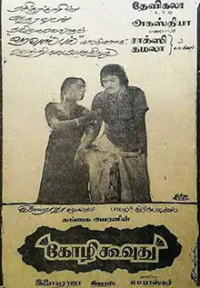 Kozhi Koovuthu (Tamil pronunciation: [koːɭi] transl. The chicken is clucking) is a 1982 Indian Tamil-language romantic musical film[1] written and directed by Gangai Amaran in his debut. The film stars Prabhu, Suresh, Smitha and Viji in her acting debut.[2] The film has music by Ilaiyaraaja, cinematography by P. S. Nivas, editing by B. Lenin, and was released on 25 December 1982.[3] The film was remade in Telugu as Veerabhadrudu (1984).