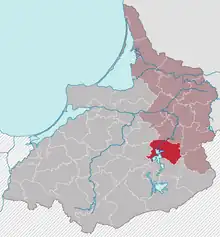 Since the East Prussian district reform of 1752, most of the area of the Angerburg district belonged to what was then the Seehesten district.[1][2] As part of the Prussian administrative reforms, the “Ordinance for Improved Establishment of the Provincial Authorities” of April 30, 1815 resulted in a comprehensive district reform in all of East Prussia, as the districts established in 1752 were too large. On September 1, 1818, the new Angerburg district was formed from the northern part of the Seehesten district in Regierungsbezirk Gumbinnen.