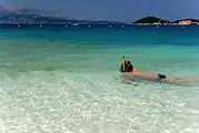 Ksamil is one of the most frequented coastal resorts by both domestic and foreign tourists. Ksamil Beach and Albania's Ionian Coast further north was included in the Guardian's 20 of the best bargain beach holidays for 2013.[6] The main attractions are the nearby Ksamil Islands. The Caribbean white sand beaches in Ksamil gave the town great tourist boost. Albanians from Kosovo and other Albanian-speaking areas visited Ksamil in recent years, but more and more international tourists are visiting the beach. This leads, for example, to new hotel facilities, but also to more expensive prices. Other activities are the Blue Eye in Muzinë, the Butrint National Park, Saranda and as well some other minor beaches that lie north to Ksamil.