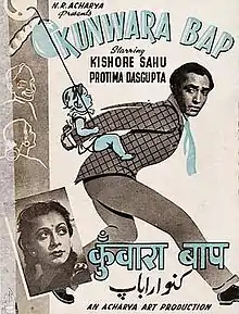Kunwara Baap (Bachelor Father) is a 1942 Hindi comedy film directed by Kishore Sahu.[1] The film was the debut directorial venture for Sahu, who directed it for the debutant producer N. R. Acharya. Acharya had just started his production company Acharya Arts Productions.[2] The story was written by Kishore Sahu who went on to write and direct films like Kali Ghata, Mayurpankh and others.[3] The music direction was by Ramchandra Pal.[4] The film had Kishore Sahu starring as the bachelor father with co-stars Protima Dasgupta, Anjali Devi, Nana Palsikar, Amritlal Nagar and Moni Chatterjee.[5]
