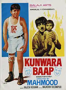 Kunwara Baap (lit. 'The Bachelor Father') is a 1974 Hindi film produced by Amarlal Chabria and directed by and starring Mehmood. The film also stars Bharathi, and Vinod Mehra. Based on Charlie Chaplin's The Kid (1921),[1] it is a film with a serious message about polio vaccination. However, Mehmood did some comedy scenes in the film to earn a Filmfare nomination as Best Comic, the only nomination for the film.[2] Rajesh Roshan makes his debut as a film composer. The hijra song "Saj Rahi Gali" sung by Mohammed Rafi topped the annual Binaca Geet Mala, which was the only countdown show at the time.[3] This film was Tamil actress Manorama's only film in Hindi, however, her lines consisted of some Tamil.