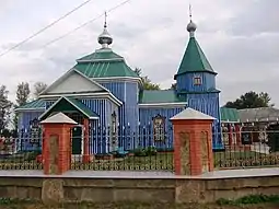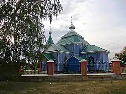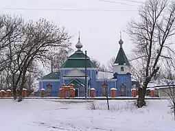 The Church of St. John the Theologian, probably built in 1625 or late XVIII century, rebuilt in 1836. Destroyed during the retreat of the Russian army in September 2022.[4] Only the bell survived the fire.[5]