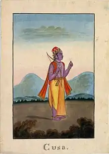 Kusha (Sanskrit: कुश, romanized: Kuśa) and his younger twin brother Lava were the children of Rama and Sita. Their story is recounted in the Hindu epic, the Ramayana. Hindu traditions claim he ruled the entire region of Kashmir, Indus River and Hindu Kush as frontier lands of India known as Hindu Kush Kshetra and founded the city of Kashmir in the valley and Kasur with Lavapuri of Lava in base lands,[1] though local lore contends Kasur was founded in 1525 by Pashtun migrants.[2][3][4] His brother Lava is traditionally believed to have founded Lavapuri (current day city of Lahore).