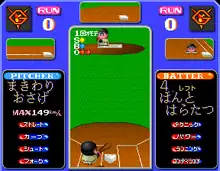 Kyūkai Dōchūki is a baseball video game. It is a spin-off of Yokai Dochuki, an older Namco arcade game from 1987 that has the distinction of being the company's first 16-bit video game.[1] The name is also a play on the title of the latter; "yakyu" is the Japanese word for baseball, which the development team thought sounded similar to the "yokai". Gameplay itself draws inspiration from Namco's Family Stadium franchise and its sister series World Stadium, with large, caricature-esc players and a more comical, "super-deformed" appearance.[1] It ran on the Namco System 2 arcade system board, which previously powered games like Valkyrie no Densetsu, Burning Force, and Final Lap. A home conversion for the Mega Drive was released in Japan on July 12, 1991.[2]