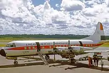 The CV-240s were replaced by three Lockheed L-188C Electra turboprops, which were acquired from Eastern Air Lines in 1969, and were operated for over 20 years.[2] On February 26, 1969, the airline began regular operation, with three weekly frequencies for Sao Paulo. Once a week, the flight continued to Rio de Janeiro, before returning to Asunción. In 1970, service started to Santa Cruz de la Sierra, Resistencia and Salta with a Douglas C-47 transferred from the Military Air Transport of the FAP. In 1972, La Paz, Bolivia was added to LAP's network. In 1973 a route to Lima was inaugurated and in 1978 to Santiago.