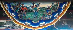 In July or August 196, Lü Bu's subordinate Hao Meng rebelled against him and attacked his office in Xiapi. Lü Bu's general Gao Shun suppressed the rebellion with help from Cao Xing – Hao Meng's subordinate, who refused to betray Lü Bu – and killed Hao Meng.[lower-alpha 5] Later that year, Lü Bu used his archery skill to prevent a battle between Liu Bei and Yuan Shu's general Ji Ling from taking place. He had a ji erected at the gate of the camp, and proposed, "Gentlemen, watch me fire an arrow at the lower part of the curved blade on the ji. If I hit it in one shot, all of you must withdraw your forces and leave. If I don't, you can remain here and prepare for battle." He then raised his bow and fired an arrow at the ji, hitting exactly the lower part of the curved blade. Everyone present at the scene was shocked. They said, "General, you possess Heaven's might!" The following day, they threw another party and then withdrew their forces.[6][7][8]