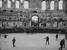 Albert Capellani was appointed Artistic Director of the SCAGL and in charge of directing L'Arlésienne, the first film to be produced by the new company. The film was almost entirely shot on location in Arles and shows the old streets, the Roman Amphitheatre and the olive groves. It was longer than usual for the time with a length of 355 meter, giving a projection time of about 18 minutes at 18 fps.[4]