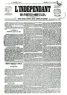 ![]() First issue of L'Indépendant, dated 1 January 1846. | |