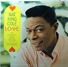 L-O-V-E is the final studio album by the American singer Nat King Cole. It was arranged by Ralph Carmichael.[2] L-O-V-E was Cole's last album, and was released shortly before his death in February 1965. The songs "The Girl from Ipanema", "My Kind of Girl" and "More (Theme From Mondo Cane)" were recorded December 1–3, 1964, shortly after Cole's diagnosis with lung cancer, and were the last recordings he made.[3] The album peaked at #4 on the Billboard Albums chart in the spring of 1965.