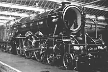 Following the success of Gresley's streamlined Class A4s introduced in 1935, Flying Scotsman was relegated to lesser duties but still worked on the main line and hauling passenger services.[14] In 1943, as with all railway stock during World War II, the locomotive was painted black.[15] In 1946, it was renumbered twice by Gresley's successor Edward Thompson, who devised a comprehensive renumbering scheme for the LNER. 4472 was initially assigned number 502, but an amendment to the system several months later led to its renumbering of 103.[16]