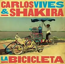 "La Bicicleta" (English: "The Bicycle") is a song by Colombian singer Carlos Vives and Colombian singer-songwriter Shakira from Vives' fifteenth studio album Vives (2017) and is also included as an album track on Shakira's eleventh studio album El Dorado (2017). The song was written by both singers, and produced by Andrés Castro and it marks Shakira's first collaboration with a fellow Colombian artist. "La Bicicleta" was intended to be representative of both singers' homelands musical styles in Colombia. It is a song with a mixture of various musical genres – vallenato, pop and reggaeton – and it features indigenous Colombian wind instruments and accordions. Lyrically, it is a nostalgic song, describing the duo's excursion on bikes to places of their childhood. Music critics reviewed the song positively, praising it for its catchiness and inclusion of various Colombian music elements. The song won two Latin Grammy Awards at the 17th Latin Grammy Awards for Song of the Year and Record of the Year.