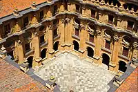 The main floor of the cloister is decorated with 28 canvases, narrating the life of St. Ignatius from the battle of Pamplona to his death, commissioned by the Society of Jesus to the Neapolitan Sebastiano Conca.[2]