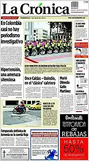 ![]() Front page of La Crónica del Quindío, 7 April 2007. | |