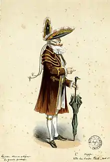 The opera was produced in English in New York City at the New York Theatre in 1868,[14] at Wood's Museum and Metropolitan beginning on 14 November 1870,[15] and at the Union Square Theatre from 3 July 1872.[16] In 1869 the work was revived in Paris, with Zulma Bouffar in the lead.[17] The opera was seen in Australia in 1873, starring Alice May,[18] who also took the title role at the Gaiety Theatre, London in 1876.[19] Several productions were staged in New York in the early 1890s, the first one at the Casino Theatre.[20] Another English adaptation was presented at the Savoy Theatre in London by the D'Oyly Carte Opera Company in 1897–98 with a new translation by Charles Brookfield and lyrics by Adrian Ross, starring Florence St. John, Florence Perry, Walter Passmore and Henry Lytton. The production ran for 104 performances,[21] and was reviewed as vivacious, but sanitised and "prudish".[22]