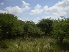 The general aspect of the central-eastern part of the province is that of a plain gently tilted to the east that is dissected by valleys.[5] The surface of the plain has a calcrete crust. The valleys of La Pampa, known as the transverse valleys (Spanish: valles transversales) are NE-SW oriented, with breadths of various kilometers and lengths of tens of kilometers. Some of the valleys host very large fossil inland dunes.[5] Formerly functioning as windfunnels for sand[5] at present these valleys are an ecotone region between the Dry and Humid Pampas.[6]