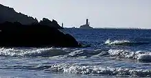 La Vieille ("The Old Lady" or "The Wrass") is a lighthouse in the département of Finistère at the commune of Plogoff, on the northwest coast of France. It lies on the rock known as Gorlebella (Breton for "farthest rock"), guiding mariners in the strait Raz de Sein, across from the companion lighthouse Tourelle de la Plate—also known as Petite Vieille ("Little Old Woman"). It is among the small class of lighthouses around the coasts of France carrying the moniker "hell", due to a remote position in rough seas.