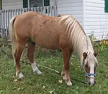 The Lac La Croix pony is a small riding horse standing 122 to 147 centimetres (12.0 to 14.2 hands; 48 to 58 in) high.[1] The breed is seen in any solid color except white and cream dilutions. Black and bay are common, as are dun shades with primitive markings. They are hardy, with smooth-flowing gaits,[2] and a reputation for being gentle and intelligent. It is considered the only breed matured by indigenous people in Canada.[3]