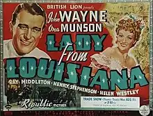 Lady from Louisiana is a 1941 American Western film starring John Wayne and Ona Munson. It was produced and directed by Bernard Vorhaus. The Louisiana State Lottery Company organizes a lottery in 1890s New Orleans, with lottery funds used to finance the local hospitals. However, a company official is the secret head of a protection racket which systematically murders the lottery winners. The protection racket has placed informers in the office of the State Attorney, and has bribed city officials and judges. As a new state attorney tries to combat rampant corruption, the city floods due to torrential rains.