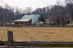 Lahr Farm is a historic home and farm located in Warwick Township, Chester County, Pennsylvania. It was originally owned by a wealthy Quaker ironmaster William Branson and part of his Reading Furnace estate.[2] The farm has three contributing buildings; the main house, bank barn, and wash hour or latchen. The house is a 2+1⁄2-story, four-bay by two-bay, fieldstone dwelling with a gable roof. The farm was inherited by Branon's grandson a wealthy ironmaster Samuel Van Leer. The Van Leer Family's original surname spelling was Von Lahr.[3] The farm remained in the Lahr family from 1834 to 1938.[4]