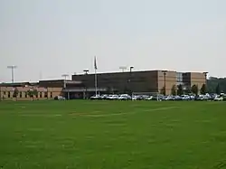 ![]() Entrance and gymnasium seen from the corner of Hillside Road and Mountain View Drive | |