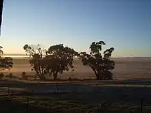 Wine grapes are grown along the western edge of the lake, on the escarpment. Sheep are grazed on the lake when it is dry or nearly so.