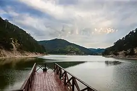 Lake Sünnet is located about 27 km (17 mi) east of Göynük and 105 km (65 mi) southwest of Bolu in Bolu Province. It was formed by landslide in a narrow and deep valley between Kurudağ and Erenler Hill. The lake covers an area of 18 ha (44 acres) at 820 m (2,690 ft) high above mean sea level.[1] Its depth reaches up to 22 m (72 ft). The lake is fed by creeks and springs around.[2]