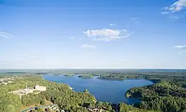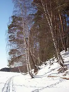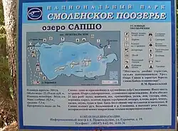 Lake Sapsho (Russian: Сапшо́) is a glacial lake in Demidovsky District of Smolensk Oblast, Russia. It is the largest lake[1][2] (3,04 km2) of the Smolenskoye Poozerye National Park. It is situated northeast of Demidov in the northwestern part of the oblast, near the settlement of Przhevalskoye. A famous 19th century Russian traveller Nikolay Przhevalsky compared the lake with Lake Baikal in miniature.[3][4] The lake is a natural monument.[5] It is connected with the Baltic Sea by the Sapsha, Vasilyevka, Yelsha, and Daugava rivers. There are 4 big and 2 small islands on the lake. There are a lot of tumuli of the Tushumlin culture by Lake Sapsho.[6][7] The flora and fauna of the lake are very diverse. Yet in the beginning of the 20th century there was the industrial fishery.[8] Though now any industry is prohibited here. A lot of species of the flora and fauna of the lake are in the Red Book.[9]