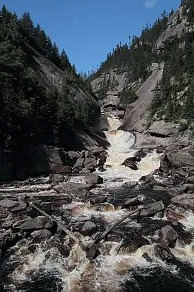 The region has high hills cut by deep glacial valleys running between rocky escarpments. There are many streams and lakes of all sizes in the territory, including the Schmon, Gravel, Pasteur and MacDonald rivers, which meander through wide glacial valleys. Lake Walker is 33 kilometres (21 mi) long and resembles a fjord. In places the cliffs along the lakeside are over 200 metres (660 ft) high, and in places it is 280 metres (920 ft) deep, making it the deepest lake in Quebec.[1] Other attractions of the park would be the Lake Larry Old Growth Forest and the MacDonald and Cody Falls.[2]