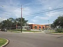 In the post-Hurricane Katrina period the library system operated the Lakeview Branch, housed in a 64-foot (20 m) by 20-foot (6.1 m) modular building. The Gulf Coast Libraries Project of the Gates Foundation funded the branch.[9] The Federal Emergency Management Agency (FEMA) was to pay for the costs of demolition of the previous library and construction of the new library since the previous facility had been, according to FEMA's estimation, over 50% damaged by Katrina. The features and amenities present in the new facility that were not in the previous facility were financed by other sources, including New Orleans municipal bond sales and funds from the Louisiana Recovery Authority. The "design-build" process, one specially allowed only in parishes affected by Hurricane Katrina under Louisiana law, was used to rebuild this library and four others.[10]