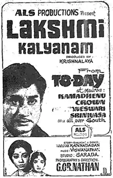 - ↑ "Lakshmi Kalyanam". The Indian Express. 15 November 1968. p. 5. Retrieved 19 January 2021.