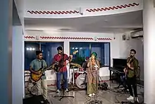 ![]() Lalon Band performed live concert at auditorium of SBMC, 2013, left to right: Iftekhar Hasan Bappy, Ashraf Ahmed Turjo, Nigar Sultana Sumi, Thein Han Maung Titi, Shaik Salekin. | |