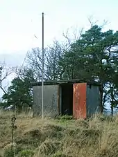 Brownmuir or Brimmer Hill Plantation is mainly composed of oak, rowan, Scots Pine, birch and beech. The area is very wet with a high humidity and as a consequence the habitat is characterised by a large number of Sphagnum moss hummocks which rise up as much a metre above ground level.[4] A whinstone quarry and a gravel pit were located on the Brownmuir Hill as were several well made cart tracks.[6] On the summit are the remains of a radio shack and aerial in a remote fenced off area once supplied with mains electricity.