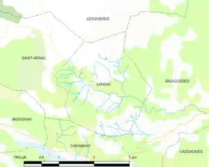 Lansac is located in the canton of La Vallée de l'Agly and in the arrondissement of Perpignan.