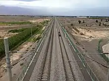 A new high-speed passenger rail line from Lanzhou to Xinjiang opened in December 2014.[2] The line is mostly parallel to the existing Lanxin railway, with the exception of also serving Xining, Qinghai rather than staying entirely within Gansu province on the way to Xinjiang. The estimated cost was 143.5 billion yuan. Since the completion of this route, the older Lanxin railway is used mostly for freight.[3]