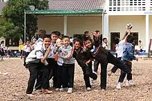 Lowland Lao are almost all Buddhists, and most villages have a wat, which serves as both a social and religious center. Whereas small villages may have only one or two monks in residence plus a few novice monks, larger villages may have up six monks plus novices. Many villagers assemble at the wat for prayers on the days of each lunar quarter; on days of major religious festivals, they carry out more elaborate ceremonies and may organize a boun (religious fair) at the wat. Before the development of a national education system, boys and young men received basic religious and secular education at the wat. The wat is frequently used as a place for village meetings, because the hall is often the only building large enough to accommodate everyone at once. Most villages have a small wat committee to oversee the maintenance of the building, organization of the fair, and the general welfare of the monks and novices. The committee members are selected by consensus on the basis of their morality and religious sincerity and usually have been monks at some time in their lives.[2]