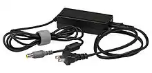 Historically, DC connectors, typically cylindrical/barrel-shaped coaxial power connectors have been used in laptops. Some vendors such as Lenovo made intermittent use of a rectangular connector.
