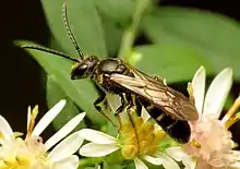 The sweat bee genus Lasioglossum is the largest of all bee genera, containing over 1800 species in numerous subgenera worldwide.[1][2] They are highly variable in size, coloration, and sculpture; among the more unusual variants, some are cleptoparasites, some are nocturnal, and some are oligolectic. Most Lasioglossum species nest in the ground, but some nest in rotten logs.[3]