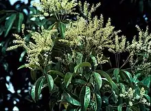 The dark green leaves grow up to 21 cm (8.3 in) long by 6 cm (2.4 in) wide, with four or five leaves in each whorl. The white flowers grow as inflorescences. The globular fruits are about 5 cm (2.0 in) in diameter, with the seeds strongly cyanogenetic (cyanide producing) and poisonous to humans. It produces a useful timber, suitable for construction work.[2]