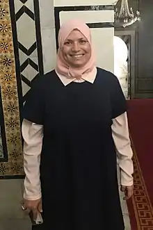 Habachi was reappointed in the Assembly of the Representatives of the People in 2014, one of 42 female members.[3] In 2014, Habachi and Sana Mersni proposed an amendment to the constitution to give the government power to nominate members of the judiciary. It was strongly opposed by Popular Front and Democratic Bloc opposition members and led to a call from the Tunisian Judges' Syndicate for strikes,[4] but was accepted by 109 votes.[5] Habachi is the vice-chair of the Committee on General Legislation.[6]