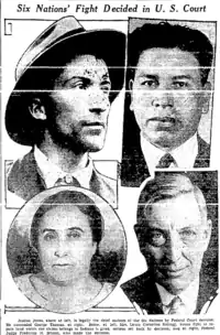 - ↑ "Six Nations Fight Decided in U.S. Court", Syracuse Herald, August 9, 1929, p.4.