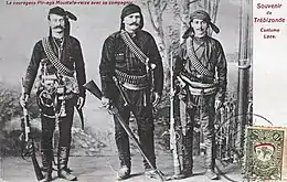 In 1547, Ottomans built coastal fortress of Gonia, an important Ottoman outpost in southwestern Georgia,[34][35] which served as capital of Lazistan; then Batum until it was acquired according to the Congress of Berlin by the Russians in 1878, throughout the Russo-Turkish War, thereafter, Rize became the capital of the sanjak. The Muslim Lazs living in newly established Batumi Oblast were subjected to ethnic cleansing; by 1882, approximately 40,000 Lazs had settled in the Ottoman Empire, especially to provinces in Western Anatolia such as Bursa, Yalova, Karamursel, Izmit, Adapazarı and Sapanca.[36] With the spread of Young Turk movement in Lazistan, the short-lived autonomist national movement headed by Faik Efendişi was established. However, it was soon eliminated as the result of Abdul Hamid's intervention.[37] During the First World War (1914–18) Russians invaded the provinces of Rize and Trabzon. However, following the Bolshevik Revolution in 1917, the Russian forces had to withdraw from the region and finally left the area to the Ottoman-Turkish forces in March 1918. From 1918 to 1920, the national movement swept rapidly all around Lazistan, committees and an interim government was created. It was oriented towards Soviet Russia. But as soon as, the Soviet-Turkish treaty of friendship was concluded, it helped the Turks, to integrate Lazistan.[38] The autonomous Lazistan sanjak existed until 1923, while the designation of the term of Lazistan was officially banned in 1926, by the Kemalists. Lazistan was divided between Rize and Artvin provinces.[39]