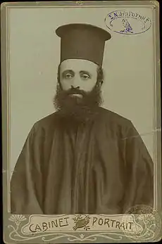 One of the first committees to protect villages was Pisoderi, one of the founding members was Lazaros Tsamis.[5] His contacts with wealthy Muslim merchants and Albanian politicians and military officials in Korestia, Prespa and Korçë quickly made him a valuable, trusted and passionate partner of Germanos Karavaggelis, Bishop of Kastoria, and the Greek Consulate of Bitola. Lazarus and his brother Papastavros organized a dense network of information in the Prespa region based on personal and business contacts.[6] In the village of Agios Germanos, members of the network were Evangelos Dimoulas, Mountousis, Paraskevaidis, Papanaum in the village Laimos Prespa Traikos Vassilopoulos, in the village Platy families Michaelides and Karidas, in the village of Kallithea Prespa Petridis in the village Pixos family Papadopoulos, in the village of Psarades Prespa Papastefanos, in the village of Karyes Prespa family Anastasiou and in the village Antartiko Traikos Lantzakis.[7] At the instigation of Bishop Germanos Karavaggelis and with the consent of the Greek Consul of Monastiri Stamatios Kiouze Peza, Lazaros joined the pro-Bulgarian Internal Macedonian Revolutionary Organization (IMRO) along with his brother priest Stavros and other members of Pisoderi committee with the sole purpose of gathering information about the movements and activities of the Bulgarian revolutionary committee (pp. IMRO).[8][9][10]