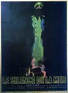 Le Silence de la mer (lit. 'The silence of the sea') is a 1949 French drama film by Jean-Pierre Melville,[1][2][3] his directorial debut.[4] It is based on the 1942 book of the same name written by Vercors (the pen name of Jean Bruller). Set during WWII in occupied France, the story concerns the relationship of a Frenchman and his niece with a German lieutenant, Werner von Ebrennac, who is billetted in their house.