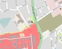 The attack took place shortly before 14:20 in Wellington Street, and near its junction with John Wilson Street, part of the South Circular Road (A205) in Woolwich, near the perimeter of the Royal Artillery Barracks where Rigby was stationed.[10] Rigby had arrived at Woolwich Arsenal station at 14:10 and was walking down Wellington Street towards the Barracks.[30][31]