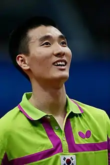 Lee Sang-su (born 13 August 1990) is a South Korean table tennis player.[4] He won two singles titles at the ITTF Pro Tour, the first one was in 2010.[5] He reached semifinals in singles event at the 2017 World Championships.